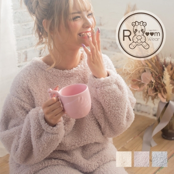 マカロンカラーふわもこプードルシャギールームウェア(上下セット)全3色