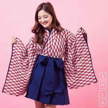 レトロな柄のトップスと袴(ボトムス)がセットになっています。