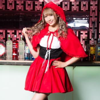こちらは童話の世界の赤ずきんちゃんのような真っ赤なドレスとケープのセットの衣装となります。
