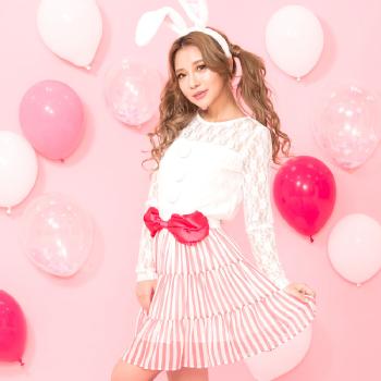 レース素材のファンタジーな世界観なウサ耳のウサギちゃんのバニーコスチュームです♪